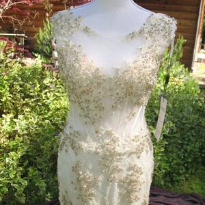 Janique Womens Bridal Wedding Corset Beaded Trumpet Gown Ivory