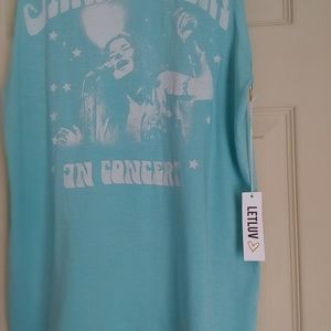 Aqua blue muscle tank, with Janis Joplin In Concert graphic on front, by LETLUV from Anthropologie. New with tags. No flaws. Sold out online. Size XS, measures approximately 16.5 inches pit to pit and 26.75 inches top of shoulder to bottom of top. Awesome gift for the Rock'n'roller in your life! From a pet and smoke free home.