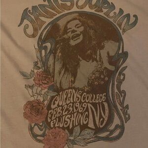 Celebrate iconic music with this Janis Joplin graphic tee. This tan top is perfect for adding a touch of vintage flair to your casual wardrobe.