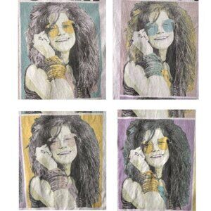 White with the classic 4 picture images of Janis on the front with JANIS JOPLIN printed above the pictures