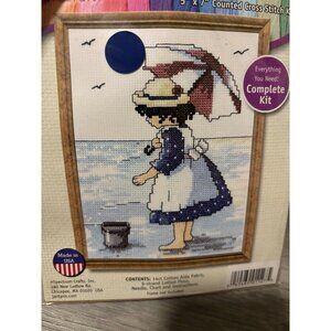 Complete counted cross stitch kit with everything you need for a charming beach scene. Ideal for beginners and hobbyists.