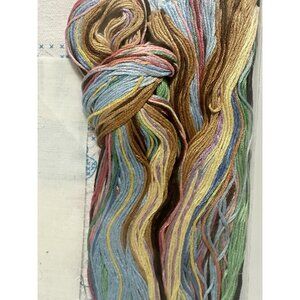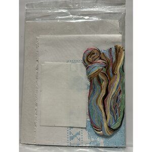 Contents: Silk screened polycotton fabric, cotton floss, needle, waste canvas/organdy, graph & instructions, alphabet & numbers for personalization