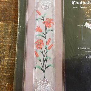 NEW IN PACKAGE Janlynn Charmin Chainstitching Crewel Embroidery Kit-- 35-22 Tiger Lily Panel. Finished size: 8" x 28". Contains: fabric, thread, instructions.