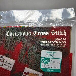 Offered here is a Vintage 1990 Janlynn Christmas Cross Stitch Kit #50-274 Set of 8 Mini Stockings 3.5x4.5"