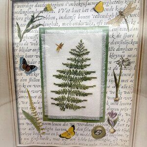 Create a detailed woodland fern design with this vintage 2002 Janlynn Nature Collection counted cross stitch kit. Includes 18 ct Aida fabric, floss, needle, chart, decorative mat, and golden dragonfly charm. Frame size 8x10. New and unopened.