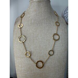 Janna Conner Gold Plated Toggle Necklace With Hammered Circle Links 20" Long