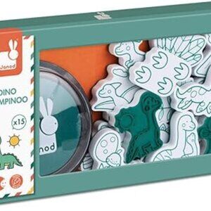 Janod Set of 15 Stampinoo Dino Stamps with Ink Pad - Ages 3+