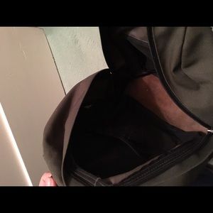 Love this backpack, just got a new one. Still really good condition, only thing is the adjustable strap on one side kind of got chewed up but otherwise all other parts are in pretty good condition. This bag can hold a lot and has a separate compartment for you to slip a laptop in which is great. No low ball offers or trades. Sort of this forest green color with fabric bottom. I lowered the price.