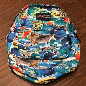 Jansport Backpack Sloth Riding Shark RARE