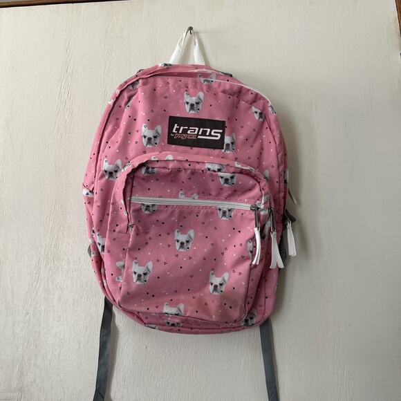 Jansport Backpack Trans Pink Pug Face Dog Heart Print Book Bag Full Size Nice