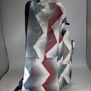 The multicolor Chevron pattern adds a fun touch to the backpack, while the adjustable shoulder strap