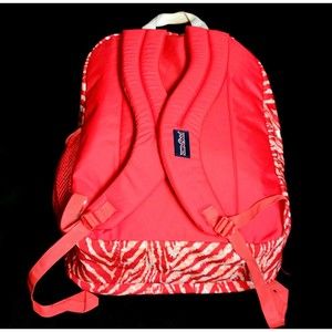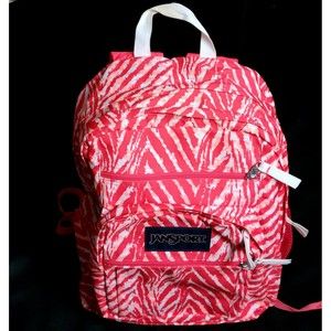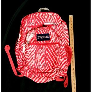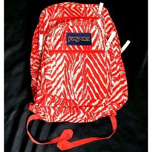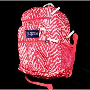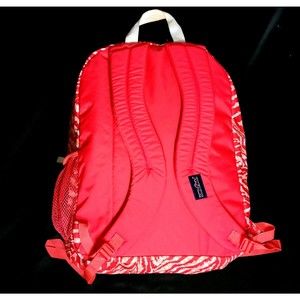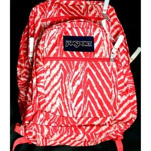 Jansport Teen Adult 17.5" Backpack WILD AT HEART Red White Zebra Stripes VGC!