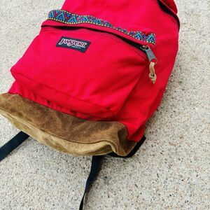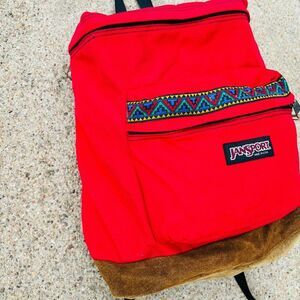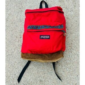 Jansport Suede Leather Bottom Backpack Day Pack Aztec Southwest Pattern Vintage