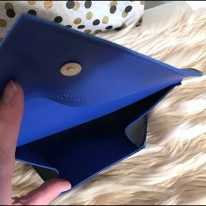 Jantaminiau/ KLM envelope clutch in royal blue.
