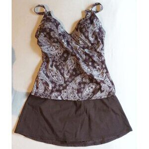 Jantzen 2-PC Set Tankini Top Skirted Bottoms 8 Brown Print