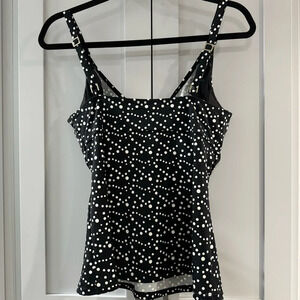 Jantzen Black & White Polka Dot Tankini Top with Built in Support Bra sz 34D/DD