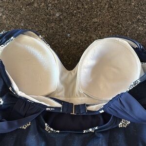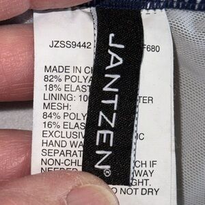Jantzen blue and white floral print one piece swimsuit. Molded bra cups. Size 16 W. Very good pre owned condition