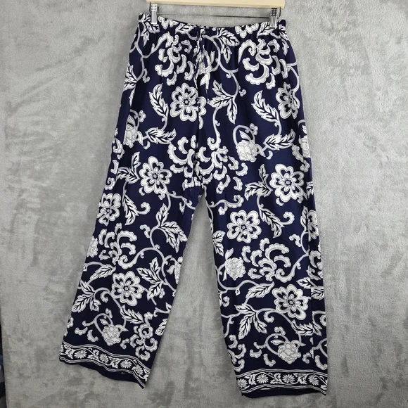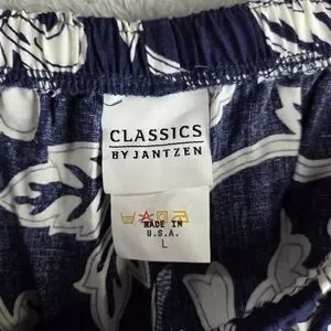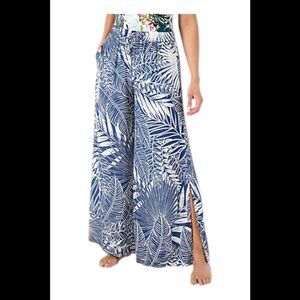 These Jantzen wide leg pants feature a striking blue and white design, perfect for a bold and stylish look. The comfortable fit and unique pattern make them a standout choice for any casual occasion.