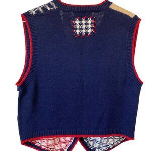 Jantzen Classic Knit Vest Vintage Patriotic USA Flags Button Front Embroidery
