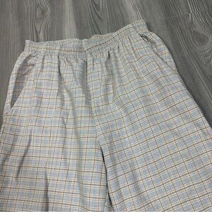 Ships fast from North Carolina! Jantzen Classics plaid straight-leg pants in a cream, brown, and baby blue check. Features elastic waist for comfort, side pockets, and cropped ankle length. Light and breathable, perfect for transitional spring looks, summer casual days, or paired with knits in fall. A versatile neutral piece that works with minimal, cottagecore, and vintage-inspired wardrobes.
