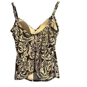 Jantzen Classics Size 10 Tankini Top Black & White Boho Hot Tub Pool Cruise