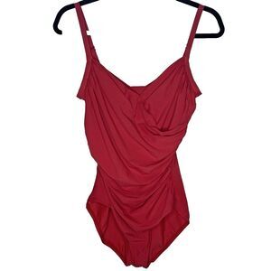 Jantzen Classics Swimsuit Ruched One Piece Adjustable Straps Slimming Sz 14 Red