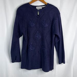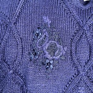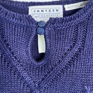Jantzen Classics Vintage Hand Embroidered Navy Blue Sweater Size Small