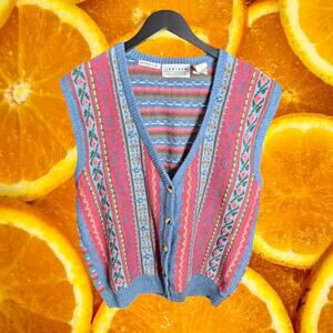 Jantzen Classics Women's Multicolor Ramie-Cotton Button Closure V-Neck Vest Size XL