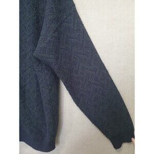 This is a Jantzen Men's Green & Blue Pointelle Long Sleeve Button-Up Cardigan Vintage XL