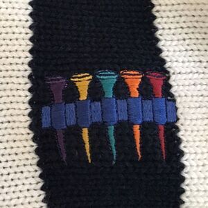 Jantzen Mens Size M Pullover Sweater Golf Embroidered Blue White Stripe VINTAGE