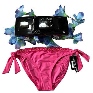 NWT. Pink Swim Bottom for Women Size 8. Ruffles detail top front, ties sides, metal brand logo back top middle. Hygienic liner intact. Pictures are part of description.