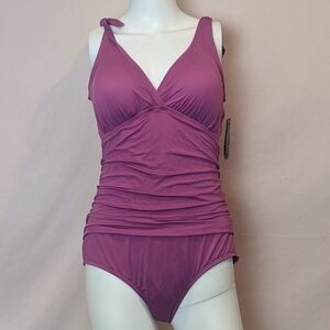 Jantzen One piece plunge back purple swimsuit. New with tags