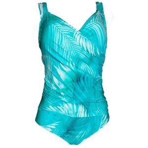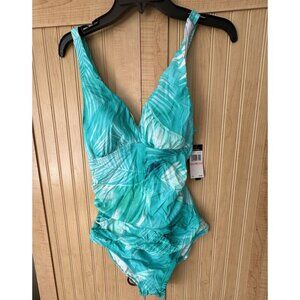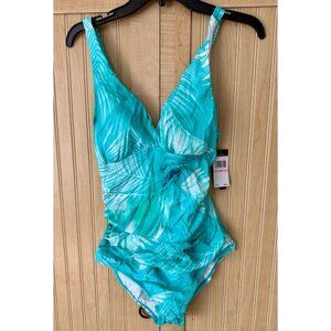 Jantzen Solid Surplice Maillot One- Piece Swimsuit Teal Palm Size 10