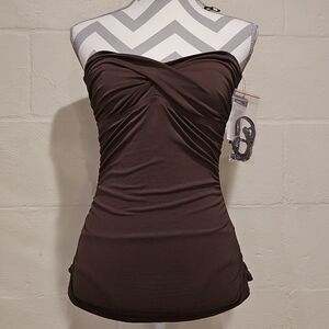 Jantzen Swimsuit Women’s Brown One Piece Ruched Sides Sewn In Cups W/Strap SZ 8.