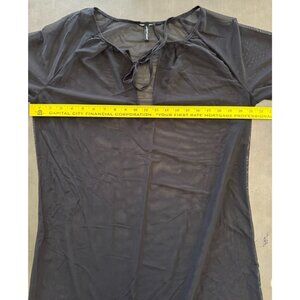 Jantzen Swimwear Black Cover Up Sheer Mesh Tunic Beach Swim Pool Tie V-Neck Blouse