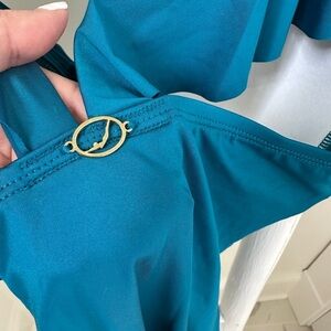 Jantzen Turquoise Island Goddess Ruffled V Neck One Piece Swimsuit SZ 12