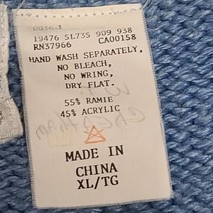 Gently preowned. Minor wear, some pilling. Faint discoloration on cuffs, small spotting on right forearm sleeve (see closeup)