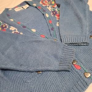 Jantzen Vintage Cardigan Blue Pink XL Spring Floral Hand Embroidered Pockets