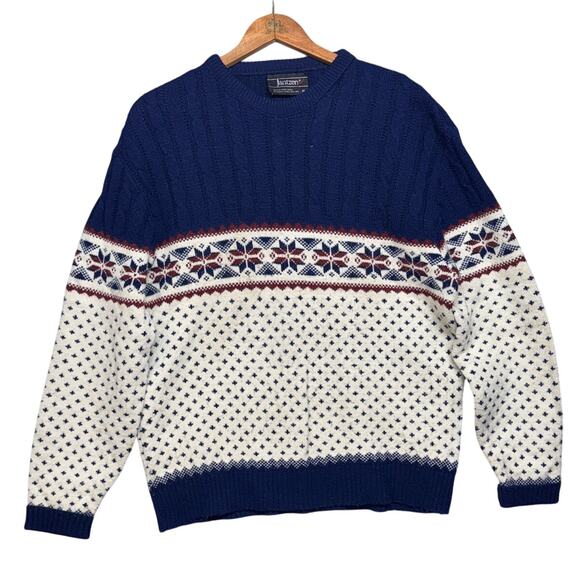 Jantzen Vintage Pull Over Fair Isle Nordic Ski Blue Red White Sweater Men XL