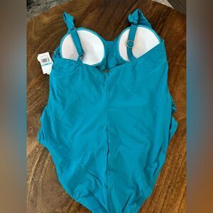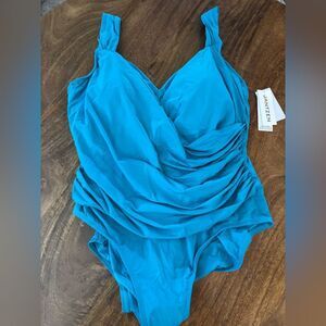 Jantzen Solid Surplice V-Neck Tummy Control Shirred One Piece Swimsuit size 20W