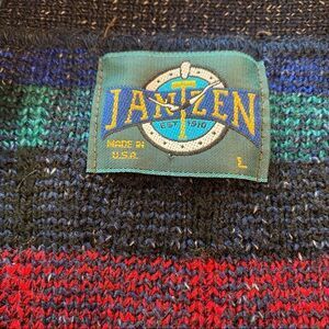 Jantzen Vintage Buttoned Knit Vest, Size Large. Excellent used vintage condition. 6 button front closure. Red, blue and green knit design. Measures chest 43”, length 26”.