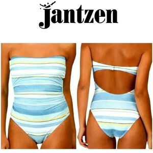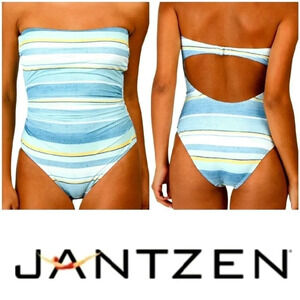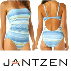 Jantzen Women's Sail AWAY STRIPE BANDEAU ONE PIECE Swimsuit size 14