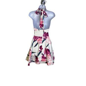 January 7 Womens Fit Flare Dress White Pink Floral Sleeveless Halter Neck S New