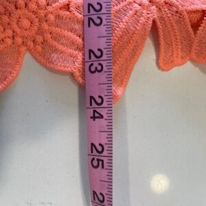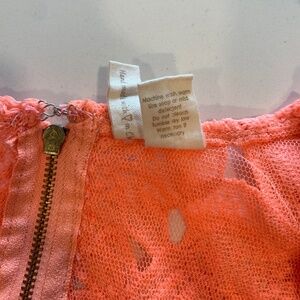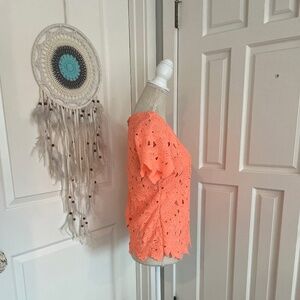 Japan Handmade Neon Orange Lace Blouse with Back Zipper & Short Sleeves – Size S