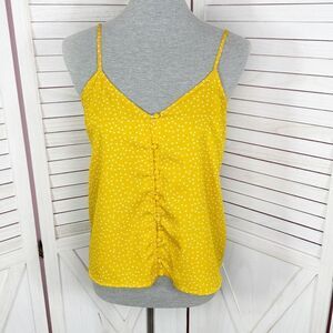 Japan Polka Dot Button Up Cami Tank Top Marigold Yellow Medium