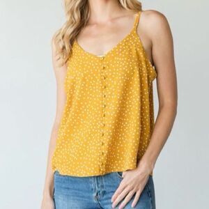 Japan Polka Dot Button Up Cami Tank Top Marigold Yellow
