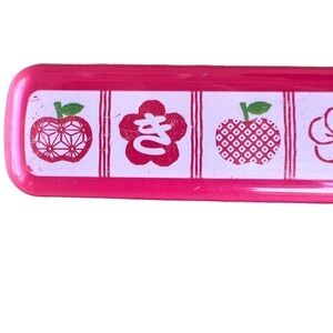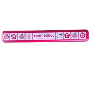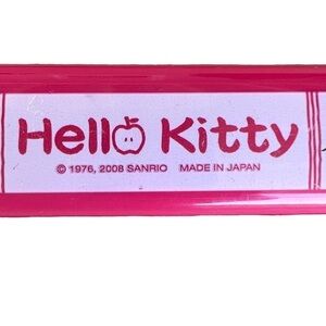 Sanrio Hello Kitty Apple Reusable Chopsticks and Case. Made in Japan. This set is from 2008. Cute apple design on case and chopsticks. Good preowned condition but shows normal wear from use. The graphics show wear and the tips of the chopsticks have some minor roughness. Hard-to-find pattern!