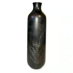 This exquisite Japanese tea ceremony carving by Sano Kosai is a stunning piece of art that will add a touch of elegance to any collection. The intricate engraving of a single flower on a type Vase is a masterpiece of traditional Japanese craftsmanship.