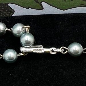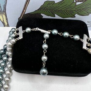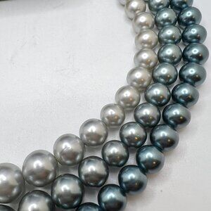 Japan Triple Strand Blue Gray Silver Glass Pearl Necklace