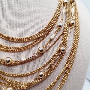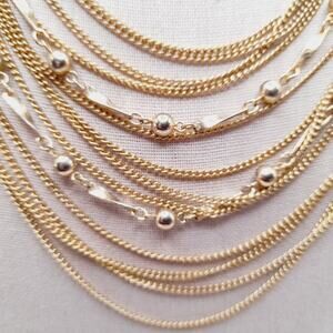 Japan Vintage 14-Strand Gold Tone Layered Necklace 15 Inch Retro